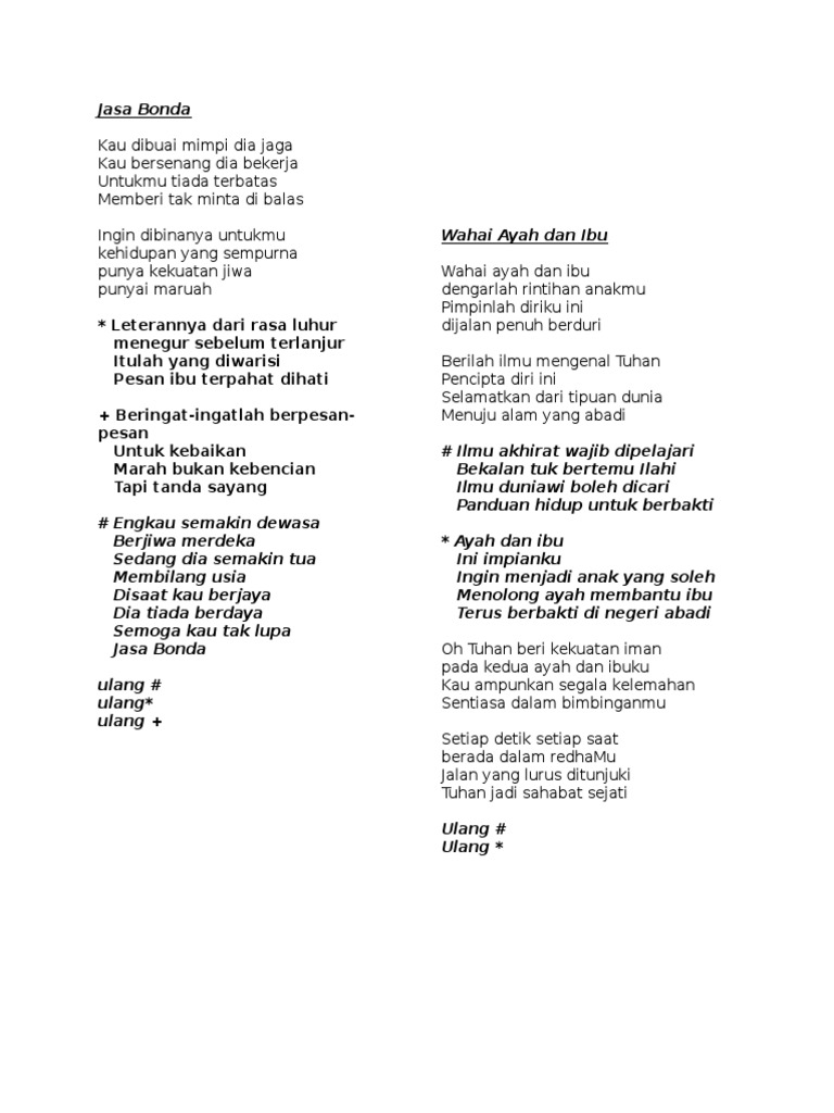 Lirik Lagu Jasa Bonda Download Doc